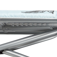 Габаритные размеры гладильной поверхности 120 х 38 см. В комплекте встроенное электроподключение (розетка) и удлинитель 1, 4 м. Предусмотрена ступенчатая регулировка высоты от 60 см до 90 см. Производится из прочных и надежных материалов. Металлические опоры надежно защищены от ржавчины порошковым покрытием.